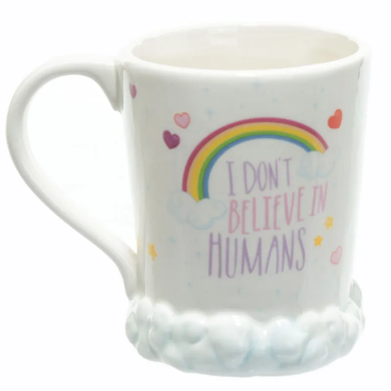 Cute Quirky Rainbow Clouds Unicorn Mug I Dont Believe In Humans Coffee Cup Magical Horse Tea Milk M