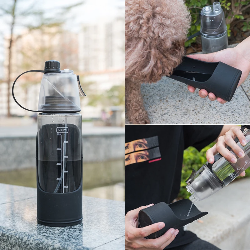 Portable Human Dog Sports Water Bottle BPA-Free Water Dispenser with Removable Pet Bowl Travel 2019
