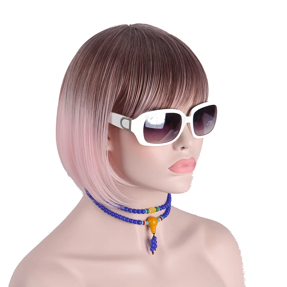 Anxin Short Bob Wigs for Women Colorful Ombre Dark Brown Light Pink Multicolored Not Human Hairs Sy